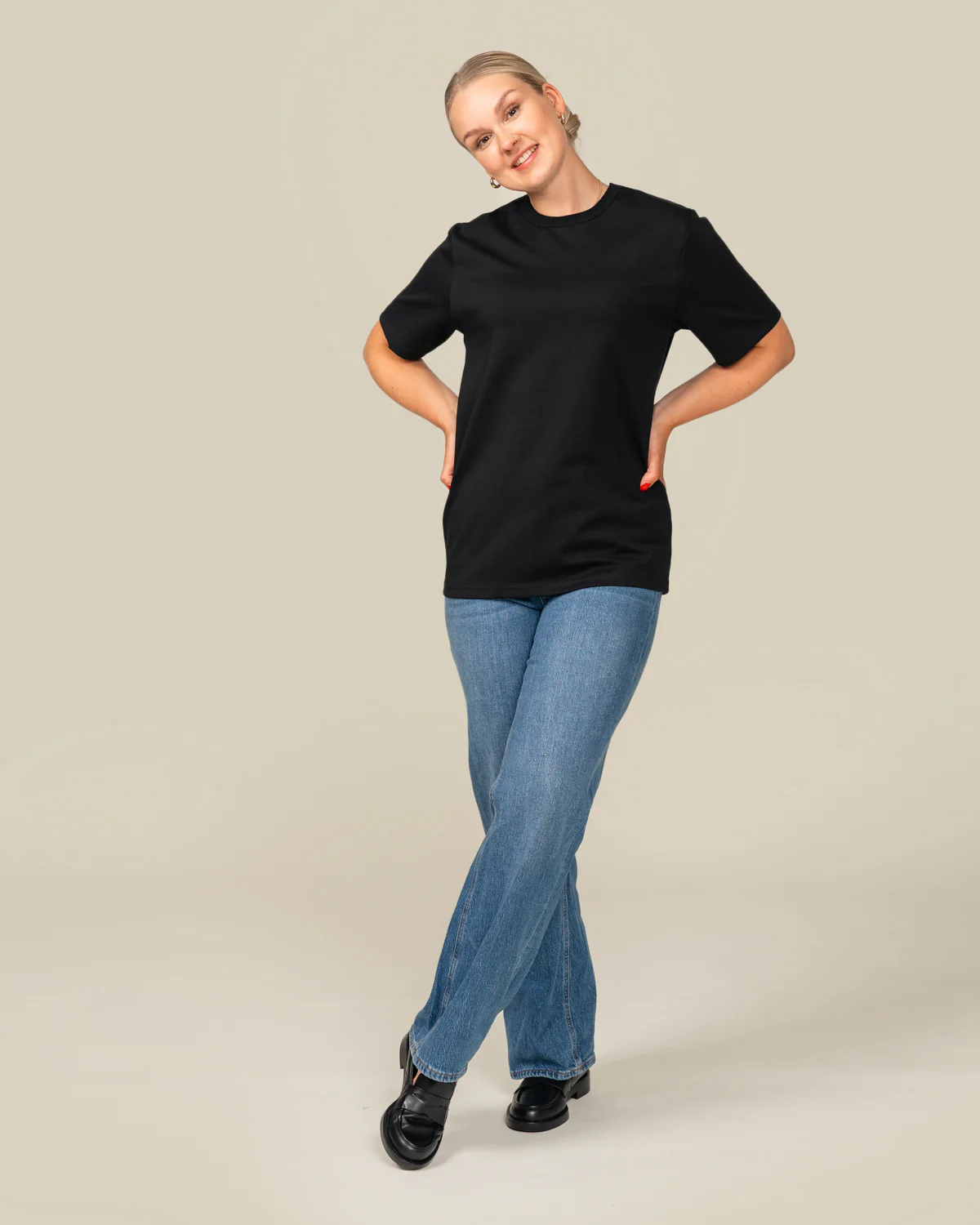 Toive Companyn laadukas musta Ajaton t-paita on rentoa unisex-mitoitusta ja se on malliltaan pidempi.