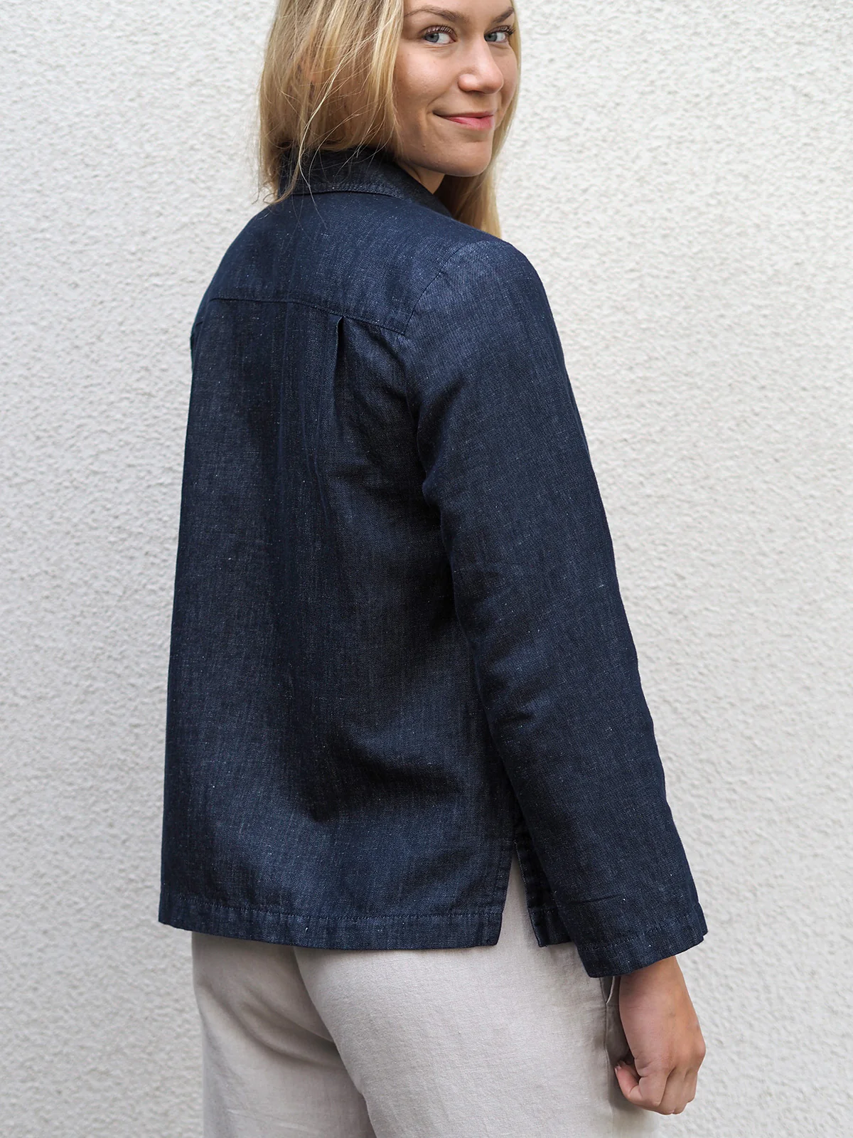 Kotimaisen CUOSI:n Heta on monikäyttöinen pellavadenimjakku, joka on helppo yhdistää erilaisiin asukokonaisuuksiin. Tätä worker-tyylistä farkkuvaatetta voit käyttää niin paitana kuin heittojakkuna.