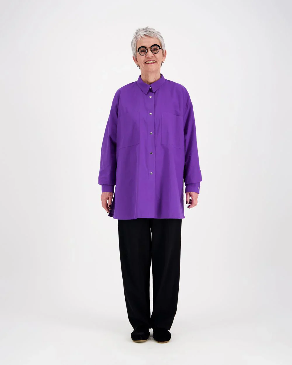 Vuokon klassikkotuote, yhden koon rento kauluspaita joka sopii jokaiselle! Tässä värivaihtoehtona syvän violetti purppuran sävy.