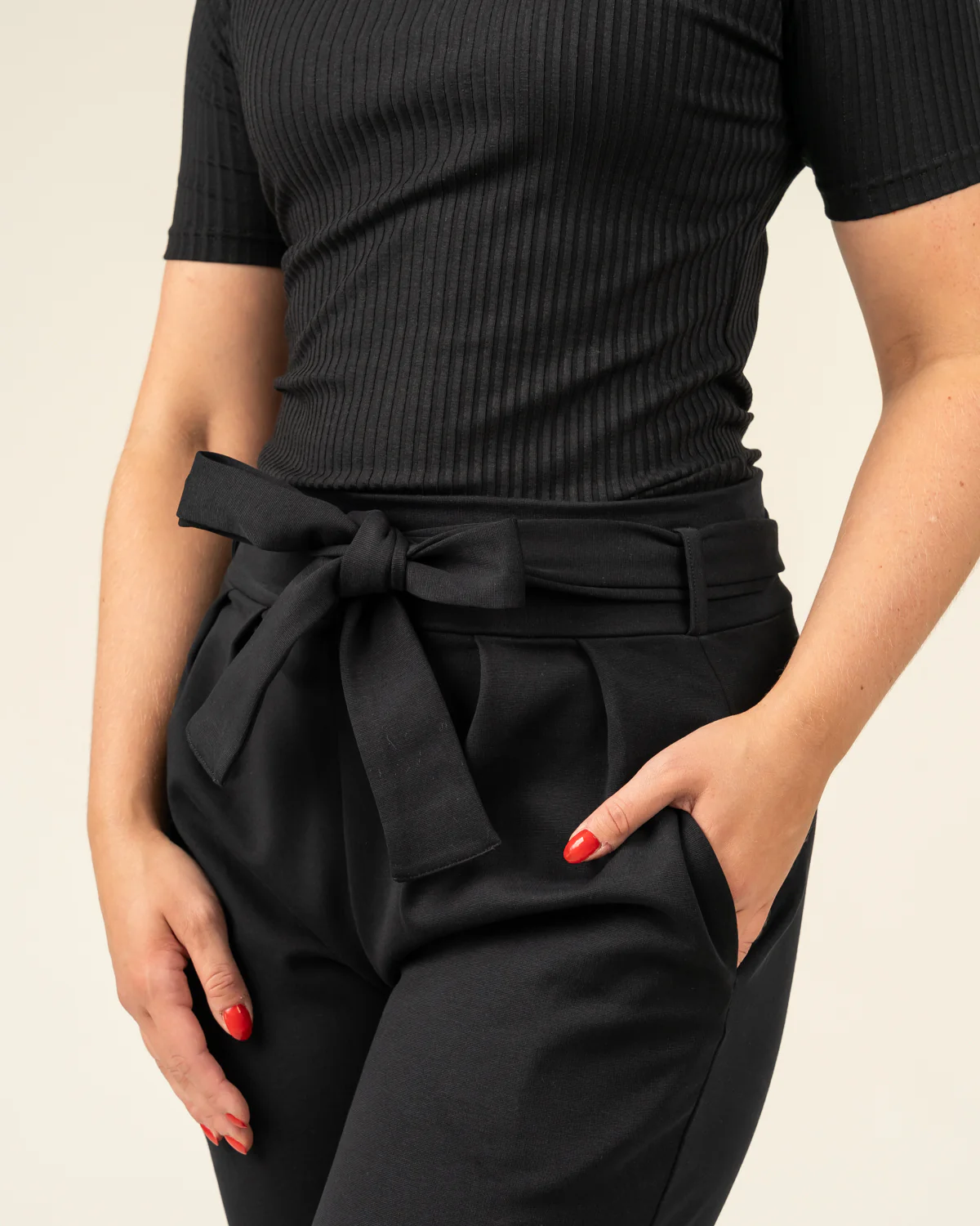Toive Companyn nimensä mukaisesti mielettömän mukavat housut, joissa mukana samansävyinen vyö! Värinä ajaton musta, joka sopii hyvin yhteen kaikkien yläosien kanssa.