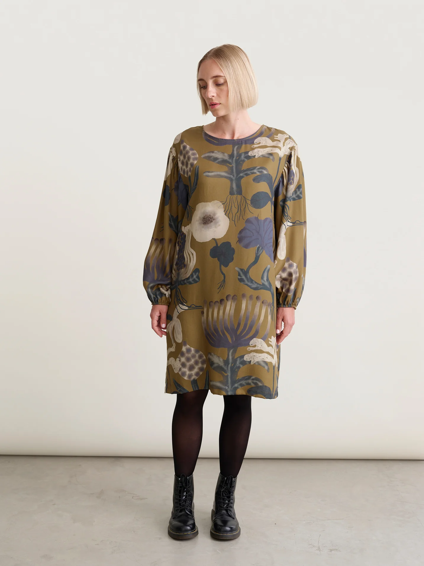 Mainion rakastettu Tunic Dress, jossa nyt upea maalauksellinen Sea Flowers -kuosi pehmeän murretuissa syksyn sävyissä!