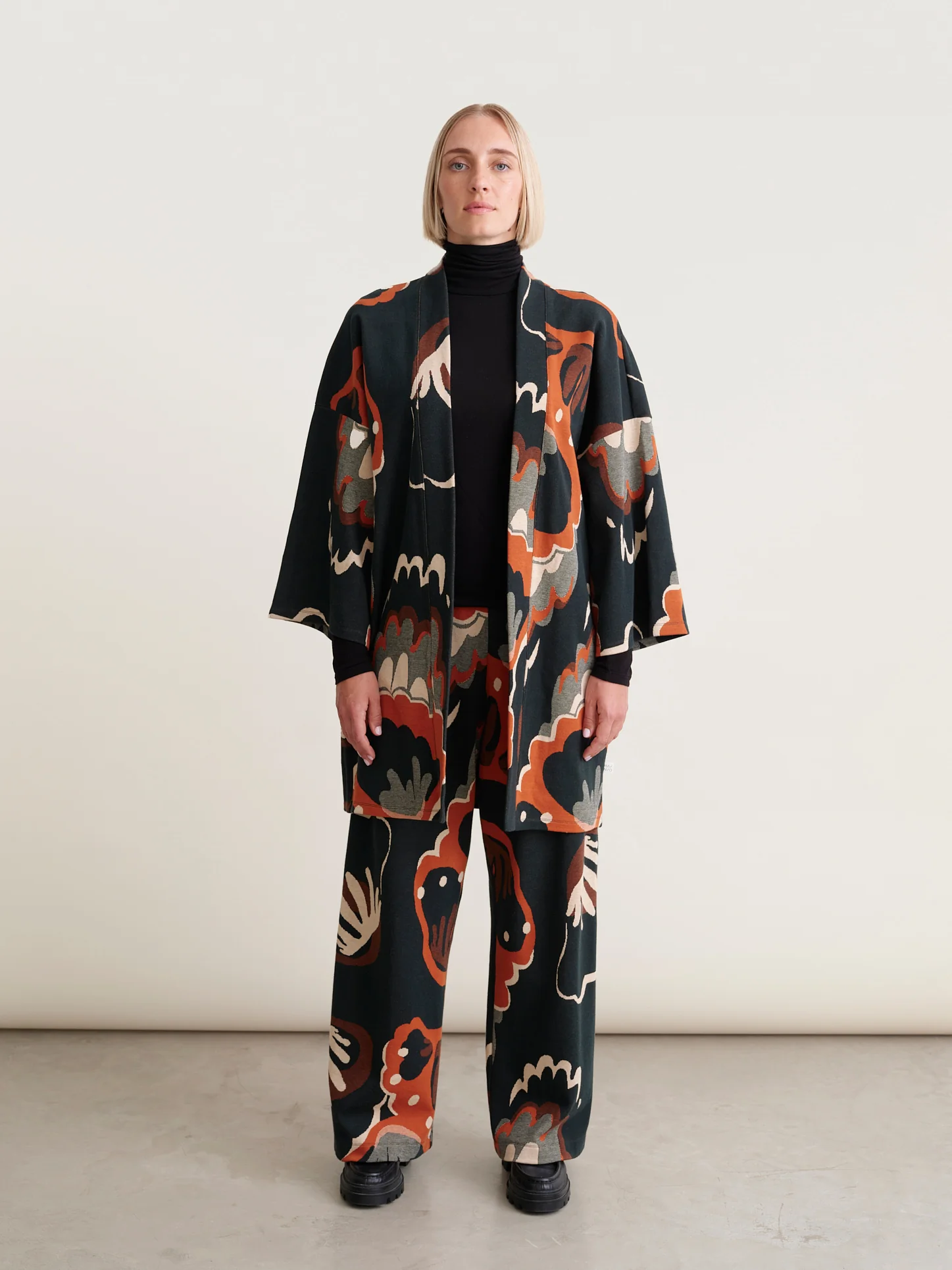 Ihanan kokoasun saat, kun yhdistät Mainion Seashell-kuosisen kimonotakin samankuosin housuihin!